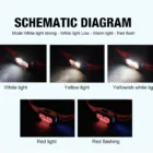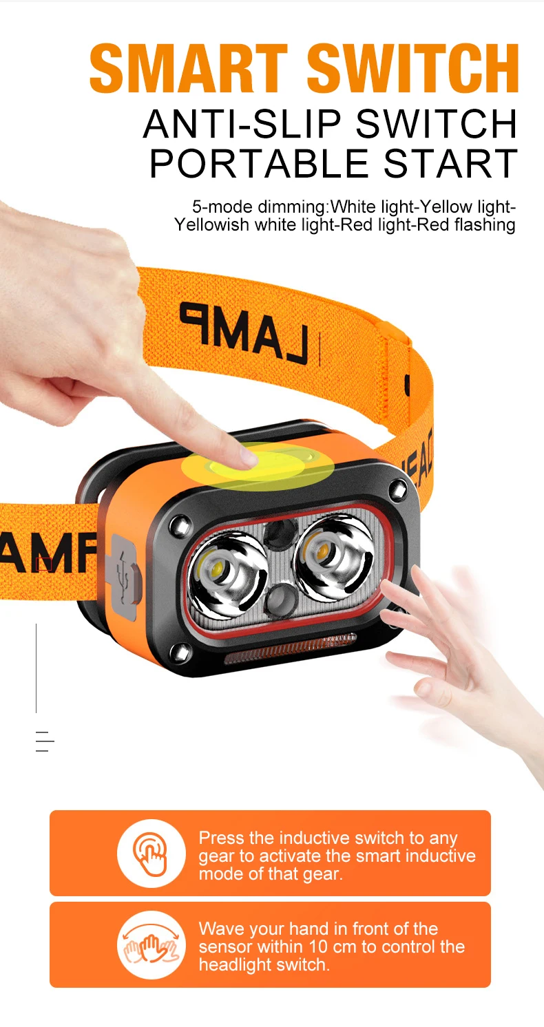 5 Mode Dimming: White Light – Yellow light – Yellowish White Light – Red Light – Red Flashing